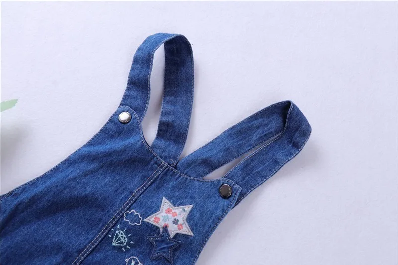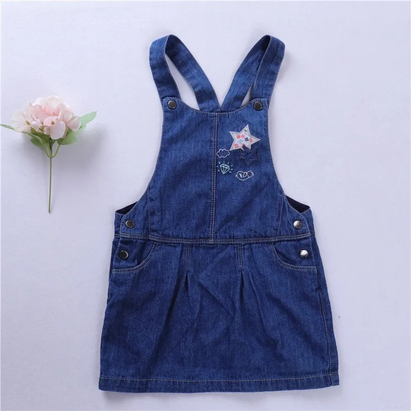 Special Chance for baby overalls girls jeans embroidery stars flowers pocket solid kids denim overalls childrens dress