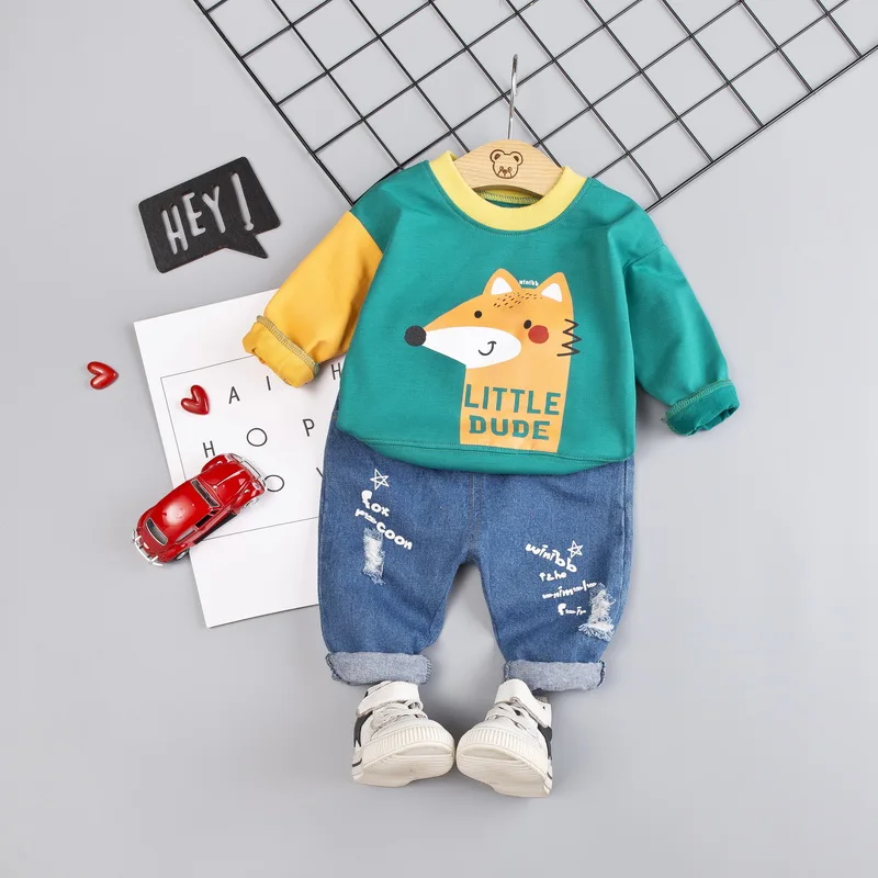 Special Offer for Infant Toddler Baby Boys Girls Clothes Sets Spring Cartoon Fox Bear T Shirt + Denim Pants Sets Kids