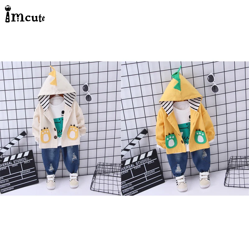 Best Chance for Newborn Baby Boys Clothes Set Cartoon Dinosaur Jacket Coat+Print Long Sleeve T shirt+Jeans Pant Out