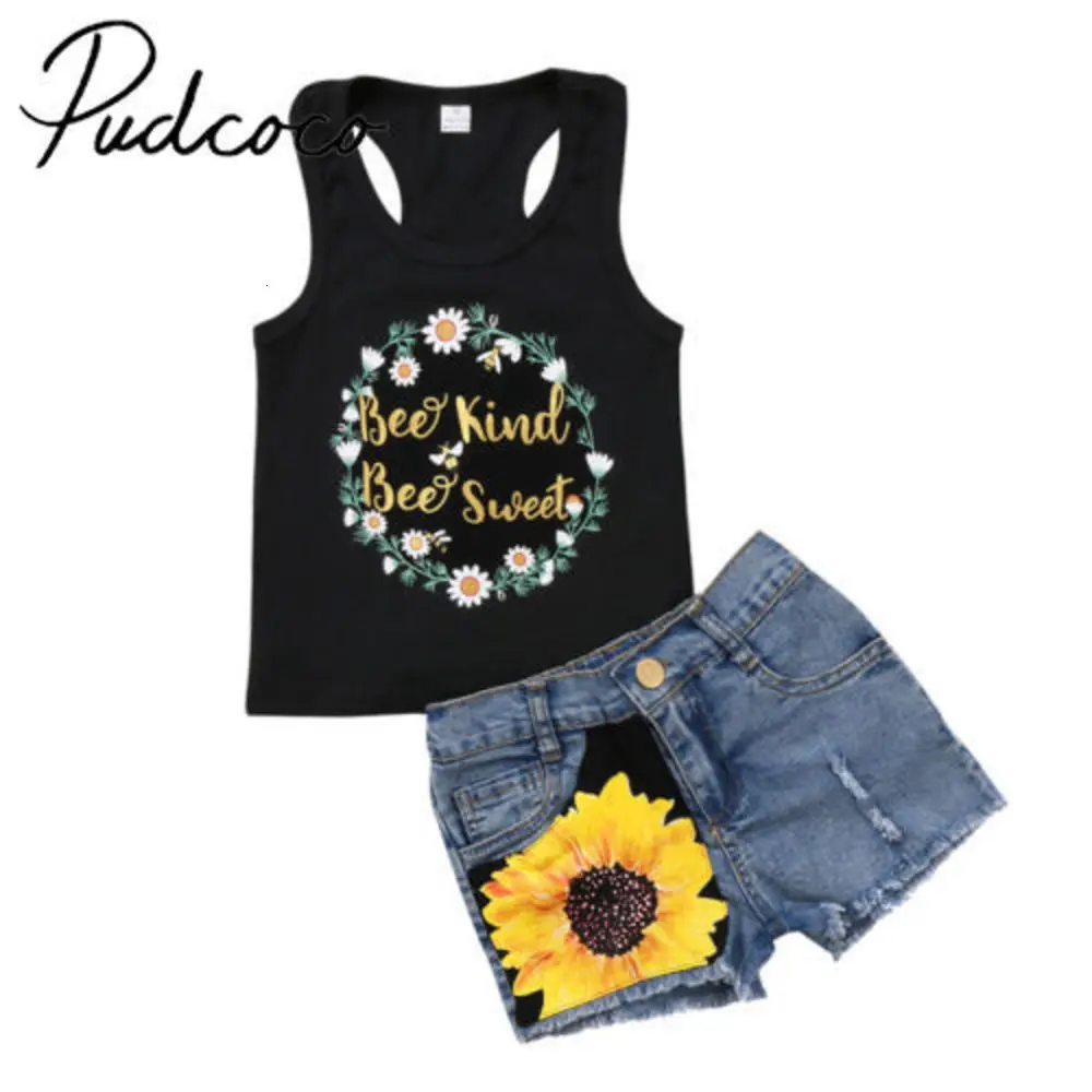 Cheap Price of Pudcoco Lovely Kids Baby Girl Clothes Cotton Floral T-shirt Shorts Denim Jeans Pants Set 1-7t